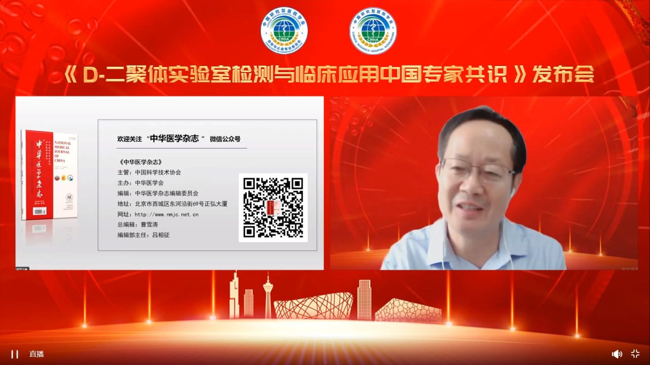 2023年10月13日上午,中國研究型醫(yī)院高峰論壇暨世界血栓日——十周年主題活動:由中國研究型醫(yī)院學(xué)會血栓與止血專委會主辦的《D-二聚體實驗室檢測與臨床應(yīng)用中國專家共識》發(fā)布與解讀會于線上召開。