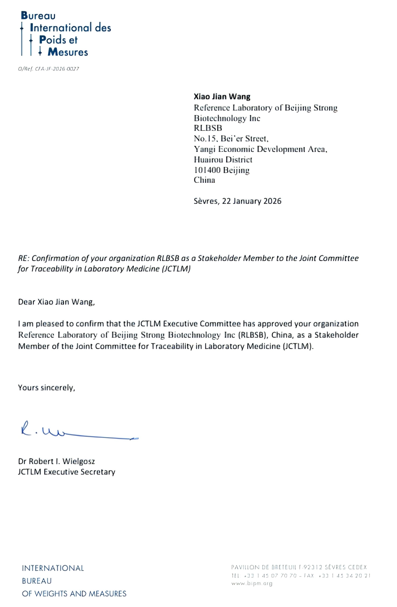 未來可期!祝賀北京九強(qiáng)生物成為國(guó)際檢驗(yàn)醫(yī)學(xué)溯源聯(lián)合委員會(huì)利益相關(guān)成員(JCTLM Stakeholder Member)